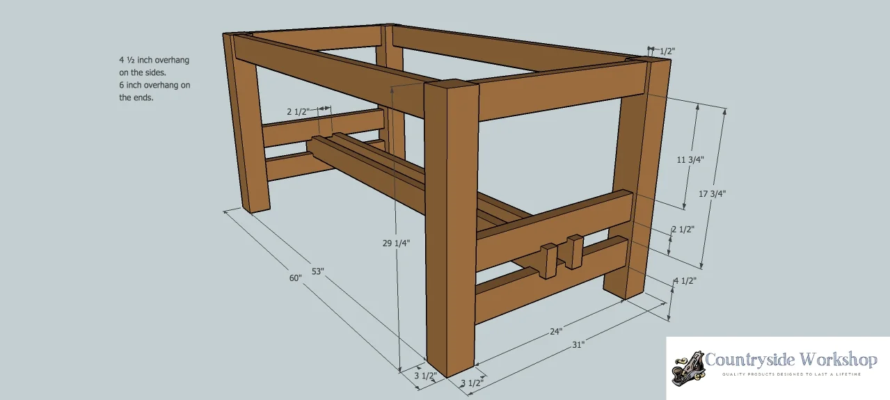 Half Lap Joints will be used to connect the lower supports with the middle stretchers. The stretchers will be sandwiched between the two lower supports.