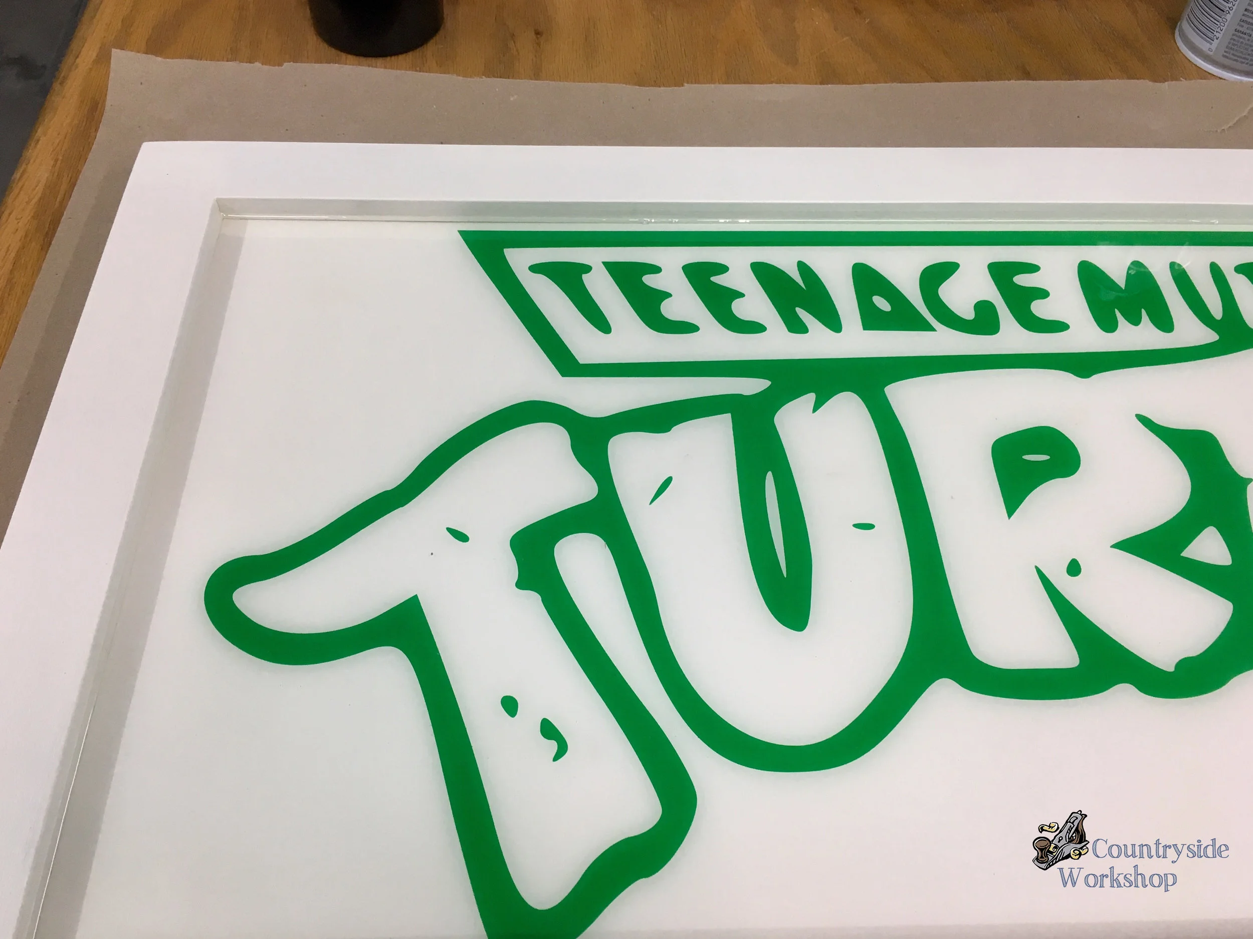 My brother got my son this awesome TMNT vinyl decal about 5 years ago when my son was really big into Ninja Turtles. Because we were renting at the time, and still are, I didn't want to put this up on the wall. It would have been destroyed trying to remove it when we moved. So the plan all along was to put it on a piece of plywood and hang it up. Well time as usual got the better of me and I found myself 5 years later still wanting to get this on the wall. Now was the perfect opportunity for me to get it done because it was going to benefit multiple people.