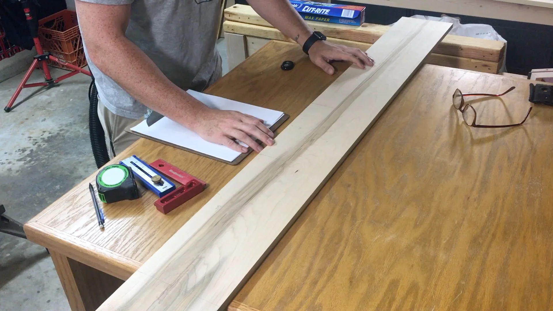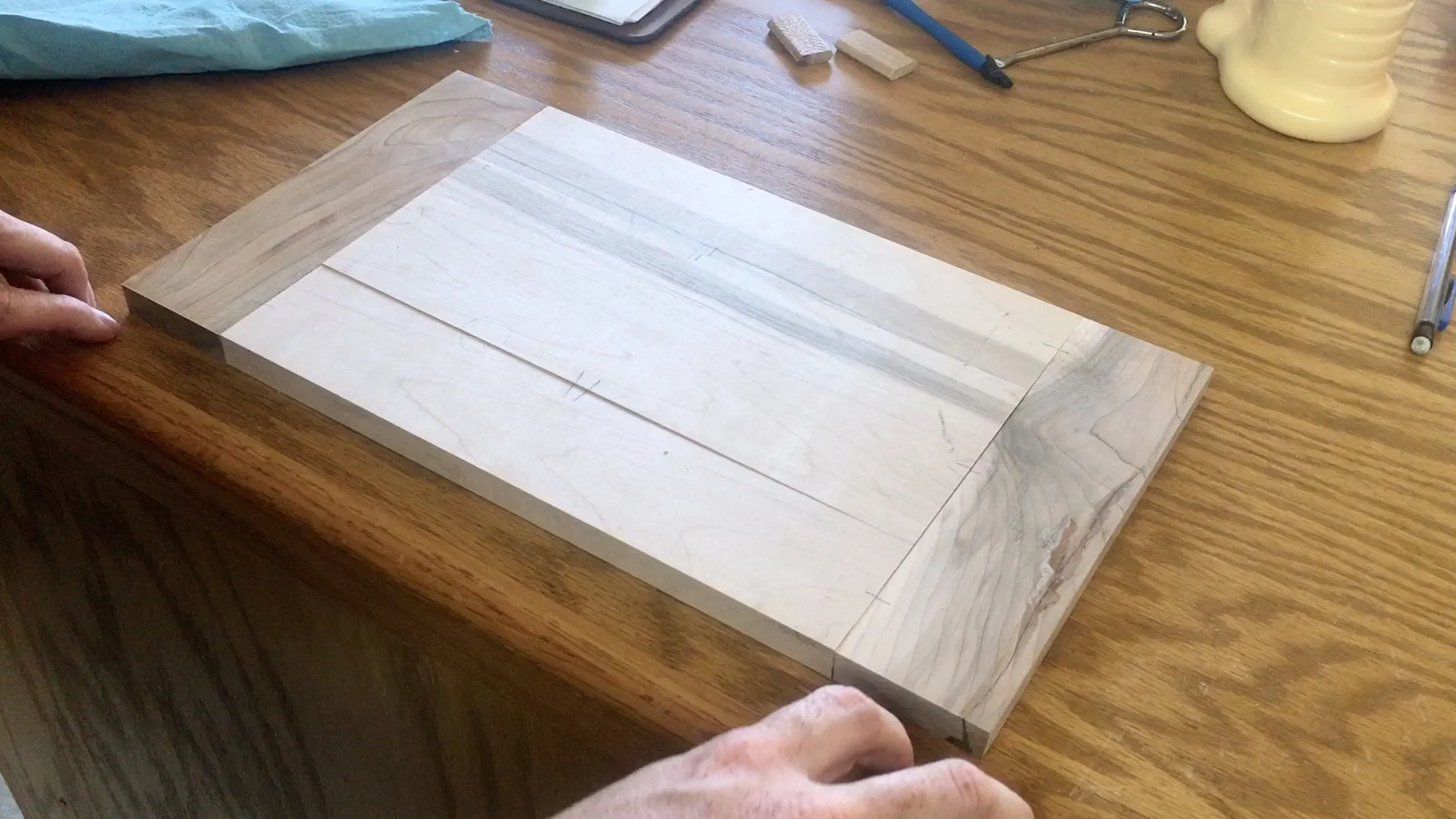 I decided to do an epoxy resin based inlay on the center panel of the top. That will be another video. While that dries I am going to start laying out the hinges.