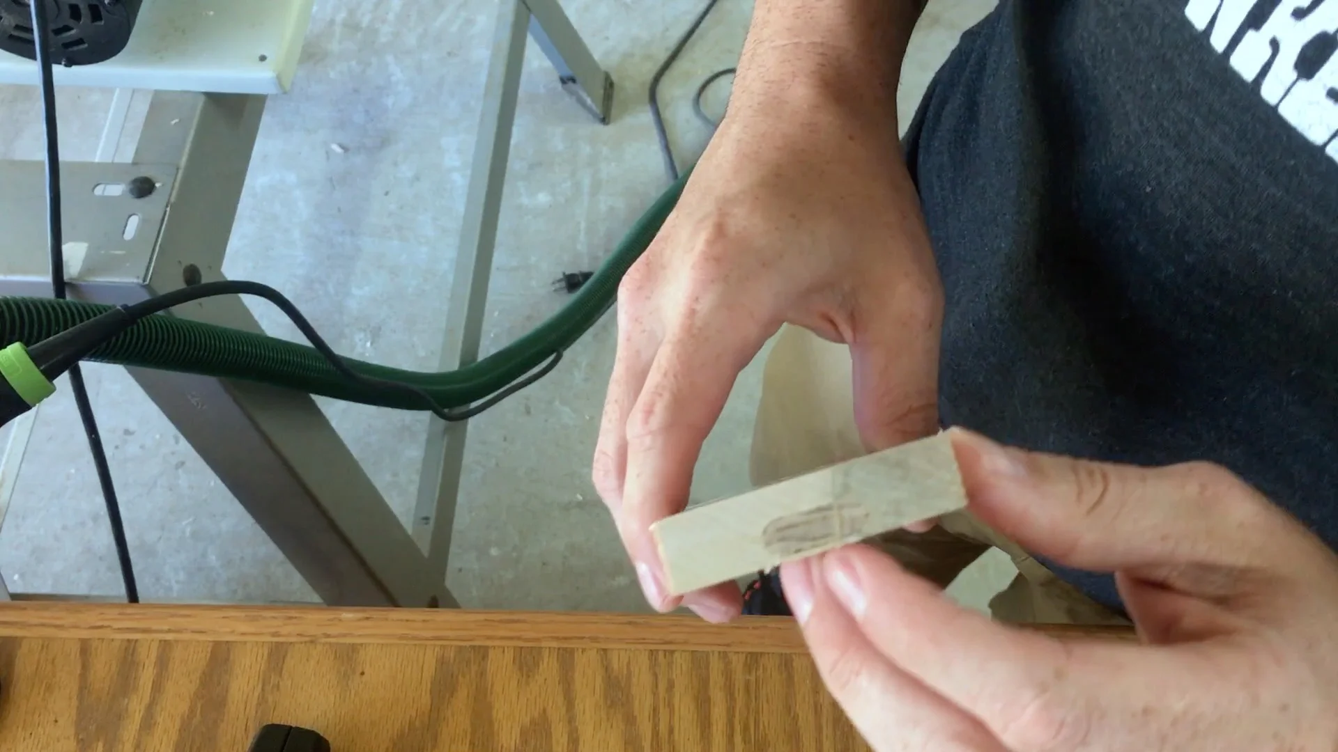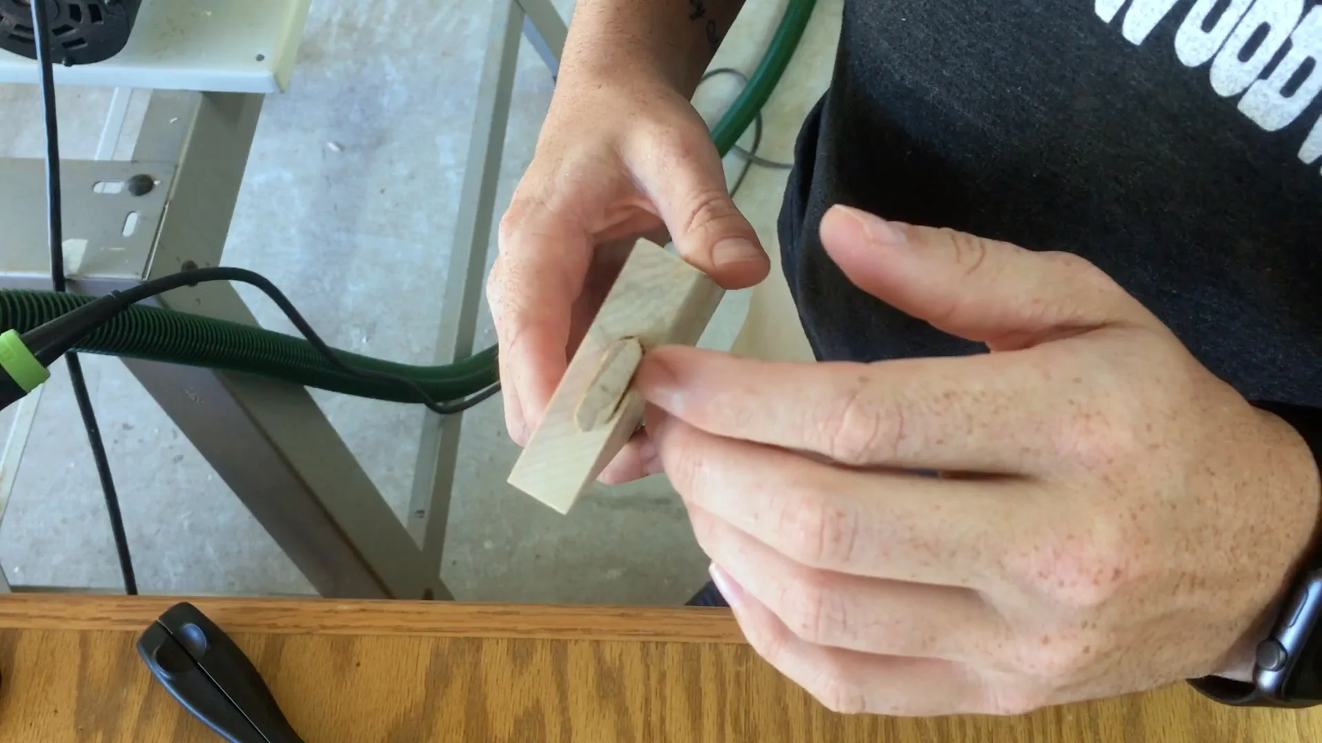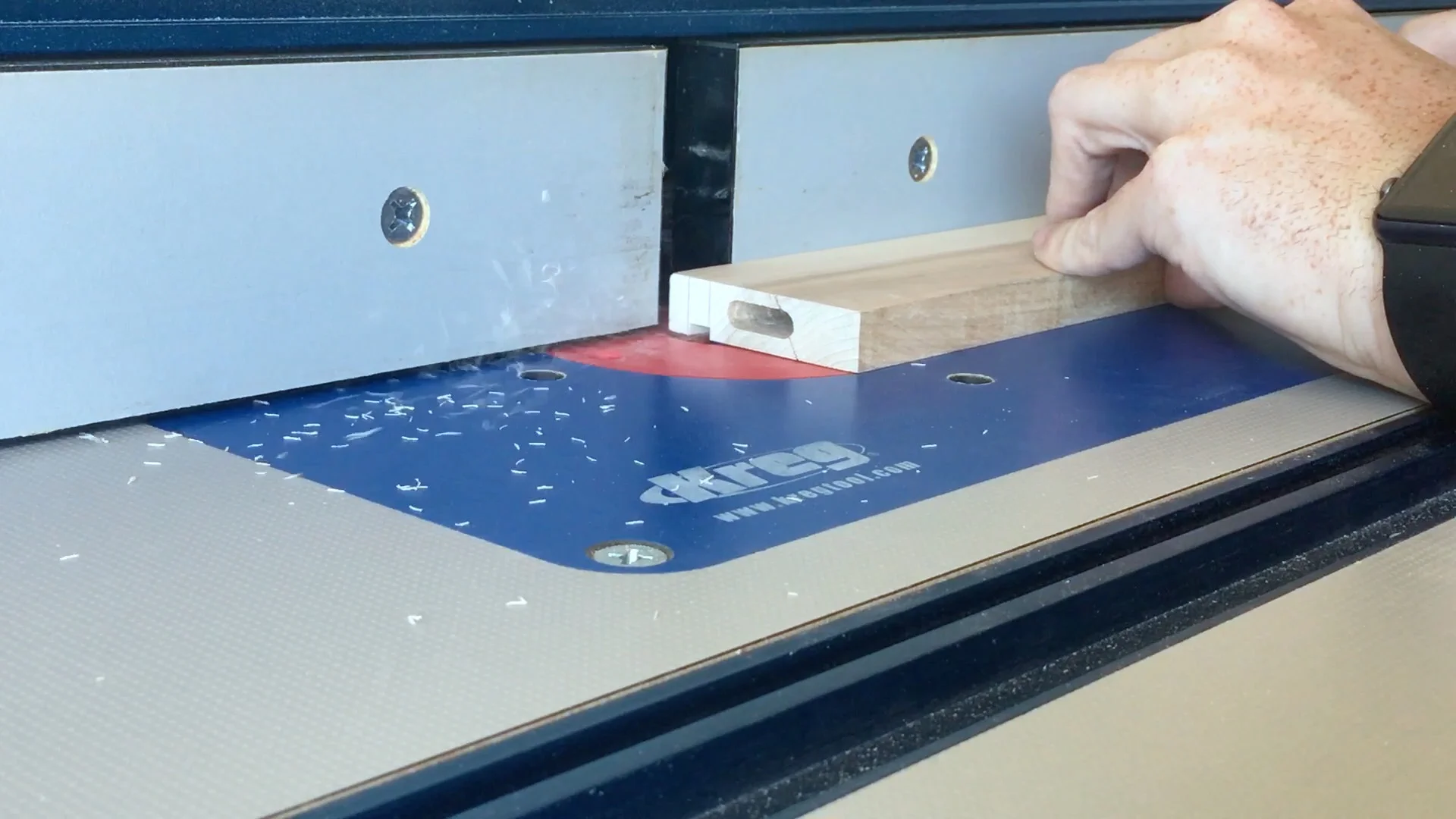 I do not know what happened but my first mortise was too close to the edge (I didn't change any settings and the rest of the mortises came out correctly). Not to worry because it is an easy fix. I simply glued in a domino into the mortise and once it dried I flush cut the domino. That gave me a hardwood patch. I then simply recut the mortise in the correct location.